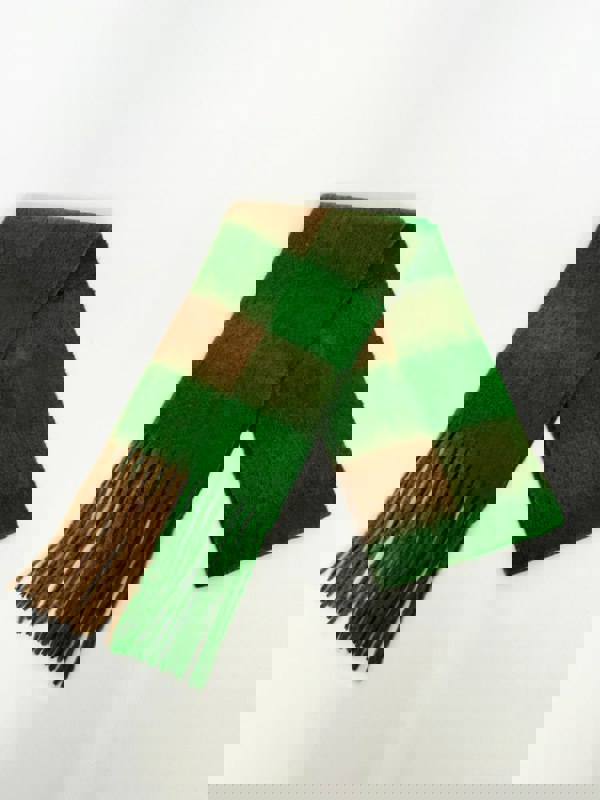 Introducing the Chunky Green and Brown Check Scarf by SVNX. This cozy and stylish scarf features a bold check pattern in rich green and brown hues, perfect for adding a touch of warmth and sophistication to your fall and winter outfits. Its chunky knit design ensures both comfort and a standout look.