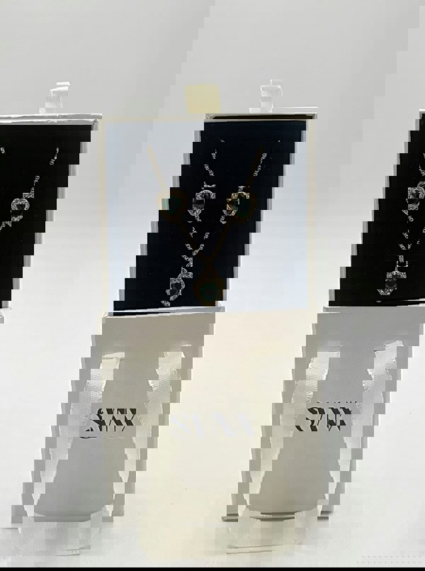 Emerald Green Diamante Heart Necklace and Earrings Set in Gold by SVNX. Elegantly crafted with attention to detail, this stunning silver set is designed to captivate and turn heads. Whether for a loved one or yourself, it’s the perfect statement piece for the season of giving.