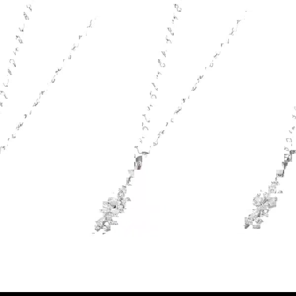 Flower Diamante Necklace in Silver. A stunning clover-shaped statement piece adorned with dazzling accents. Whether worn solo for a minimalist touch or layered with other necklaces, this versatile accessory adds a hint of sparkle to any look. Ideal for special occasions or everyday elegance, it’s the perfect treat for yourself or a thoughtful gift for someone special.