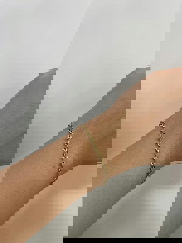 Heart Link Bracelet in Gold. A timeless piece with a delicate heart link design, blending subtle charm with refined elegance. Perfect for daily wear or special occasions, this bracelet adds a sophisticated touch to any outfit.