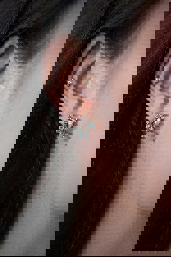 • Hanging Leaf with Pearl Earring in Gold