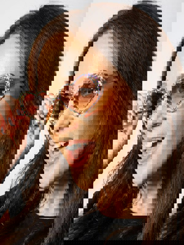 • Heart Sunglasses with Gem Detail in Champagne
