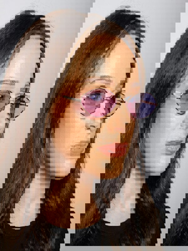 • Metal Oval Frame Sunglasses with Lilac Lenses