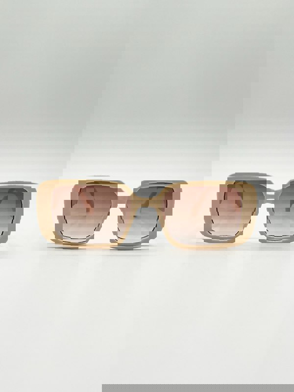 Oversized Rectangle Sunglasses in Beige by SVNX. These fashion-forward sunglasses feature a bold oversized rectangle frame in a chic beige hue, offering a stylish and sophisticated look. Perfect for making a statement while enjoying superior sun protection and a touch of modern elegance. All our sunglasses are FDA approved.