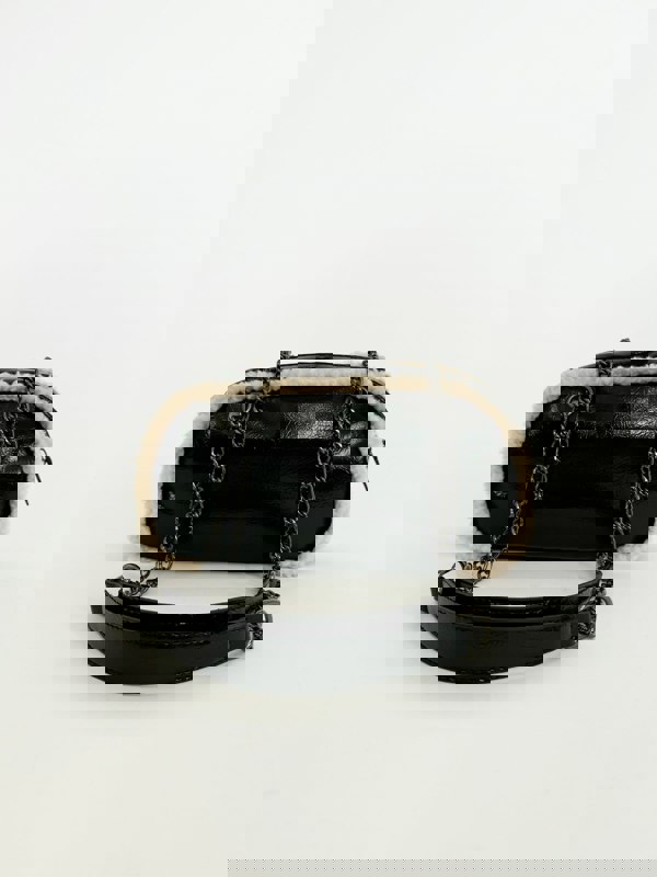 Elevate your wardrobe with the Patent Shoulder Bag with Borg Fur Trim by SVNX. This trendy piece features a sleek patent finish, chain strap detail, and luxurious borg fur trim. Its stylish and unique design effortlessly enhances all your seasonal outfits, adding a touch of sophistication and warmth.