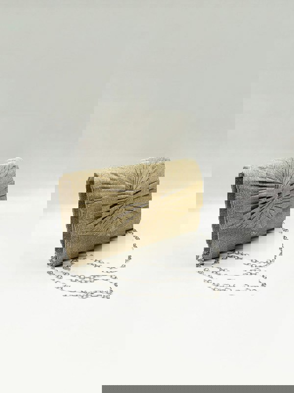 Elevate every look with our timeless clutch bags—crafted for elegance, designed to impress. Featuring refined finishes and a sleek chain strap, they’re the ultimate statement in luxury. Poyester. L:23. 5cm W:4cm H:12. 5cm. Colour: Gold. SKU: HB361424.
