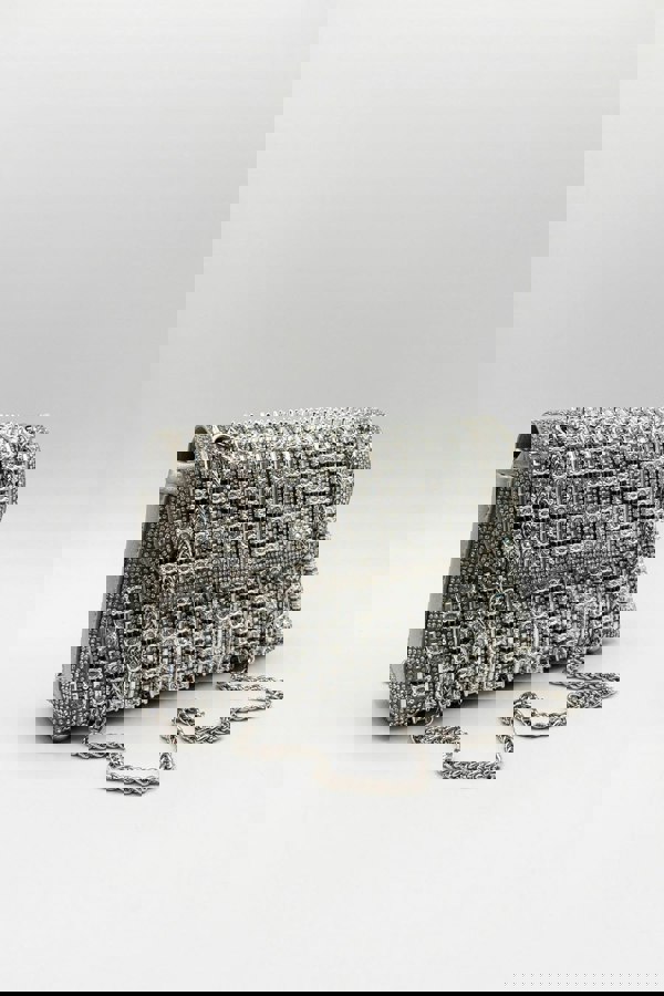 Make a bold statement with the Silver Embellished Clutch Bag. With intricate embellishments, this eye-catching piece brings a playful yet chic touch to any outfit. Carry it as a standout double chain shoulder bag or use the chain strap for crossbody. Perfect for adding flair to your look, this bag is a celebration of style.