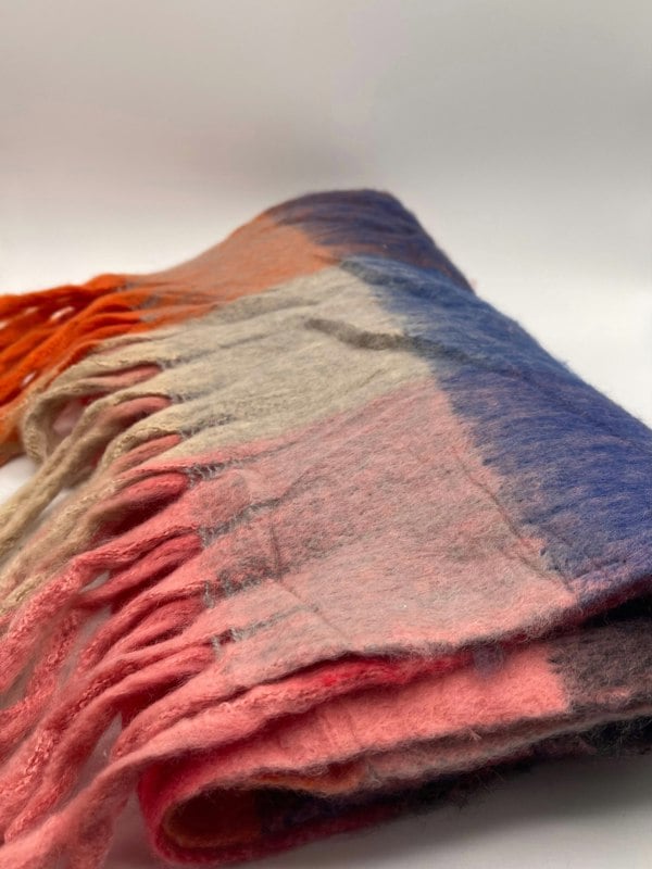 Wrap yourself in warmth and style with the Soft Chunky Checked Scarf with Tassels in Blue Berry. Featuring rich, cool tones and a classic checked pattern, this cozy scarf adds a touch of elegance to your winter ensemble while keeping you snug. Composition and Size: 20% Wool, 80% Viscose. L: 180cm x W: 65cm (L: 71 inch x B:25. 6inch)