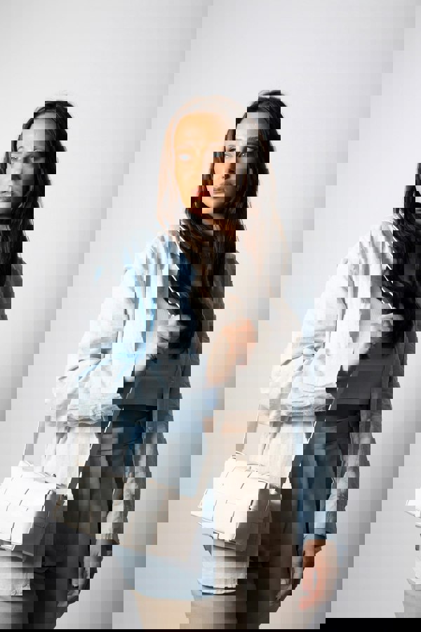 SVNX Woven PU shoulder bag in Cream