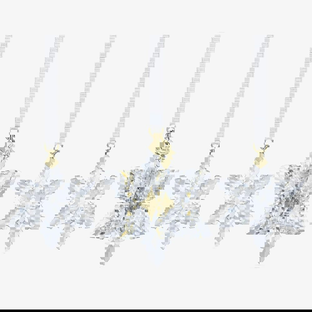 This year’s Swarovski Annual Edition 3D Ornament Set captures the magic of winter. Celebrating the unique beauty of snowflakes, each design showcases Swarovski's exceptional craftsmanship with a total of 606 facets. Suspended from white grosgrain ribbons, the set includes two smaller snowflakes and one 3D snowflake with a glossy gold-tone centre and a tag engraved with “2024. ” Perfect for hanging in a window or on your tree, this set will cast a wondrous light over any holiday décor. Note: This is a decorative object, not a toy, and is not suitable for children under 15.