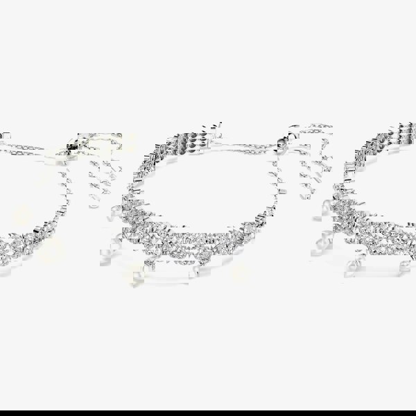 Discover a pure expression of elegance in this refined bracelet. Easily adjustable with a sliding ball closure, the rhodium plated design features two rows of cup chain, set with clear Swarovski Zirconia in round cuts. An adornment of Swarovski Crystal Pearls is then added below for a sensational look of luxury. Pair this bracelet with the matching choker to create your own expressive combination.