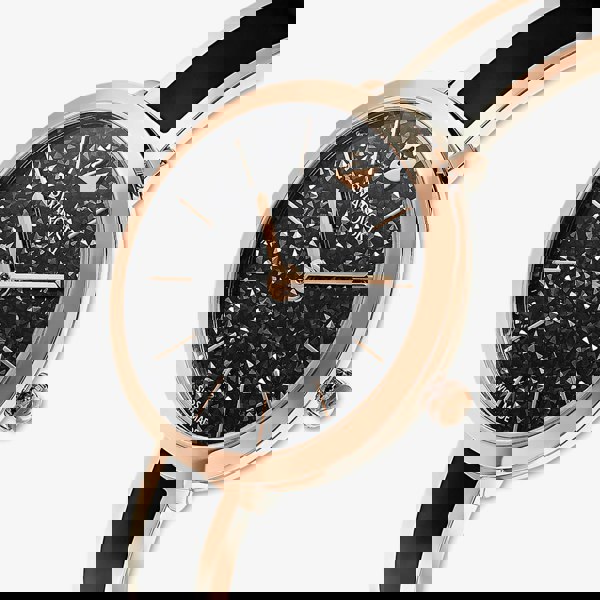 Situated on a rose-gold coloured stainless steel 16. 5cm bangle-style bracelet with black enamel detail and a fold-over clasp, the stunning black dial features approximately 1000 genuine Swarovski black crystals and rose gold coloured hands and batons to give you all the glamour you could need. Adjustable links ensure it will fit any wrist size.