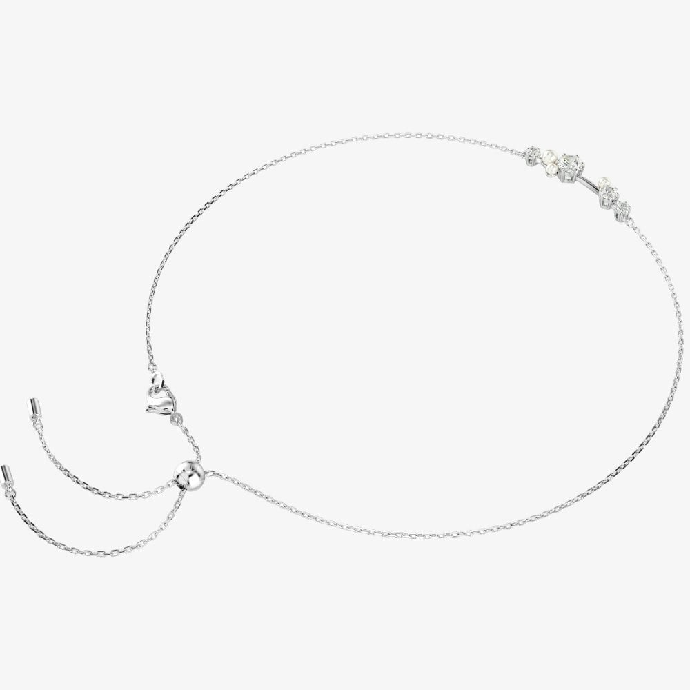 Launch your style into the stars with this versatile Constella creation. The rhodium plated design features a special pulling mechanism, allowing you to wear the jewellery as a necklace or a choker. At the front, the different-sized Swarovski Zirconia and Swarovski Crystal Pearls almost seem to float among the discrete articulations, producing a look of cosmic wonder. Play with the different styling possibilities and wear it alongside a matching ring for endless reflections of light.