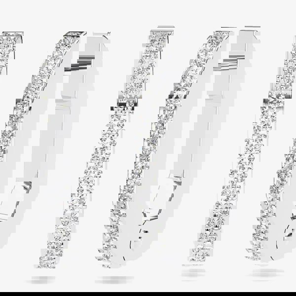 Commending Swarovski's refined pavé technique, these small octagonal hoop earrings showcase intricate detailing within a boldly constructed design, creating a contemporary statement. The delicate white crystals embedded in rhodium-plated settings accentuate an industrial-inspired aesthetic.