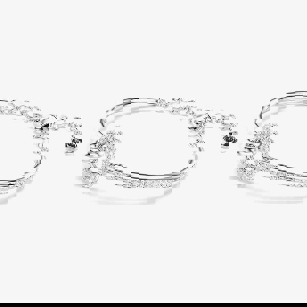 Add a touch of elegance with the Swarovski Dextera Rhodium Plated Silver Tone Crystal Set Bracelet. This stylish half bangle, half bracelet design features a sparkling open circle centre motif, while the bangle section is lined with shimmering white Swarovski crystals for extra brilliance. Finished in rhodium-plated silver tone and adjustable from 17–18cm, it’s a versatile and sophisticated piece, perfect as a gift or a standout addition to your jewellery collection.