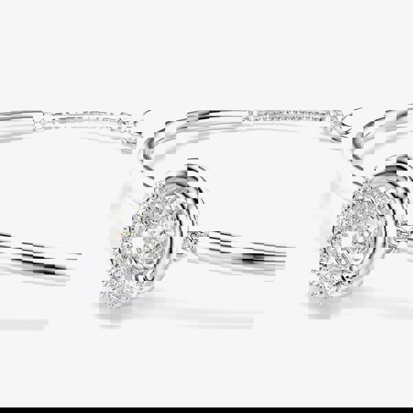 Capture the light with this stunning Dextera bangle. The rhodium-plated design features a lobster clasp and a central hoop half encrusted with a pavé of clear crystals, accented by a sparkling Swarovski Zirconia at its centre. A radiant piece that adds elegance and joy to any look.