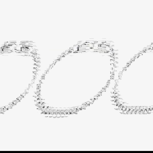 Embodying timeless charm, this bracelet emanates a captivating gleam that speaks volumes. The delicate strand features bezel-set clear crystals on a rhodium-plated bracelet, achieving a dainty and minimalistic aesthetic that simultaneously makes a bold statement of sheer elegance. Its secure fold over clasp closure ensures both style and stability, and it comes complete with an extender for adjustable wear.