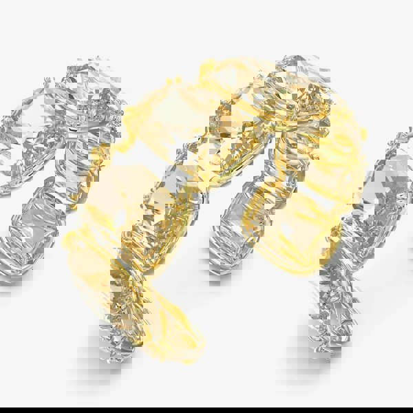 Meticulously crafted from a series of oversized, elongated cushion-cut crystals, each delicately cradled in a prong setting, creating the illusion of floating stones.
