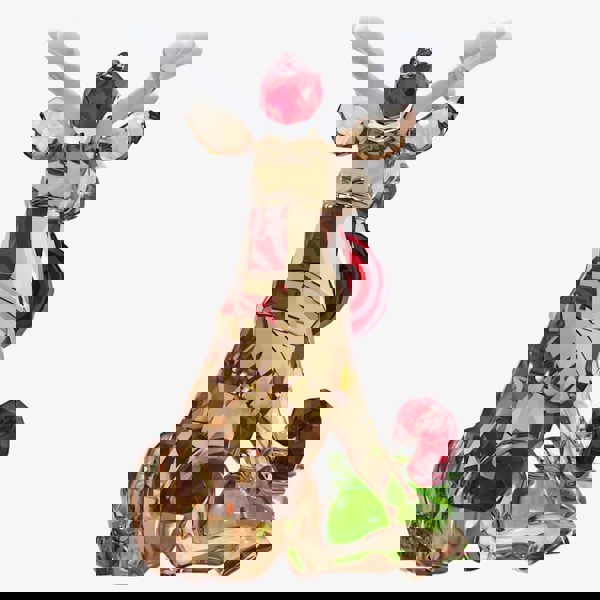 This delightful reindeer figurine is sure to bring a touch of festive magic to your home. The playful design, crafted with 690 facets, includes refined details like a green bag of candy and a mini-Santa hat. White lacquered accents provide a sleek finish, and the reindeer's cute expression is bound to always raise a smile.