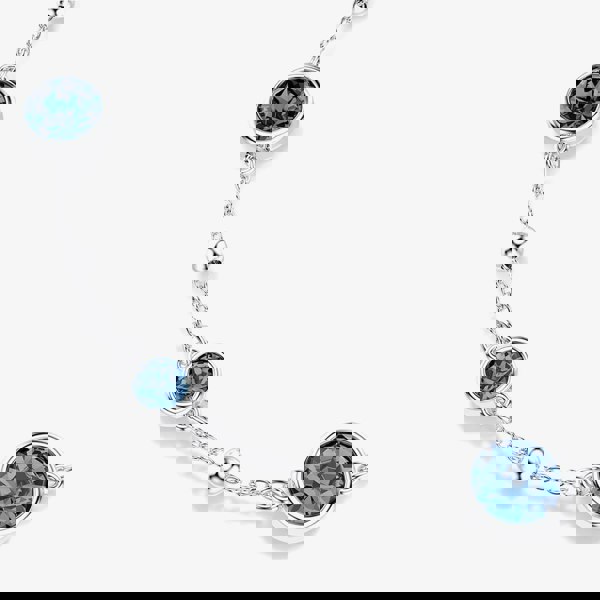 This Imber bracelet stands out with its playful mix of shapes and soft shimmer. Set on a rhodium-plated chain, it features metal droplets and round blue crystals in sleek bezel settings. Finished with a lobster clasp and extender, it offers a comfortable, adjustable fit, an elegant detail for any outfit.