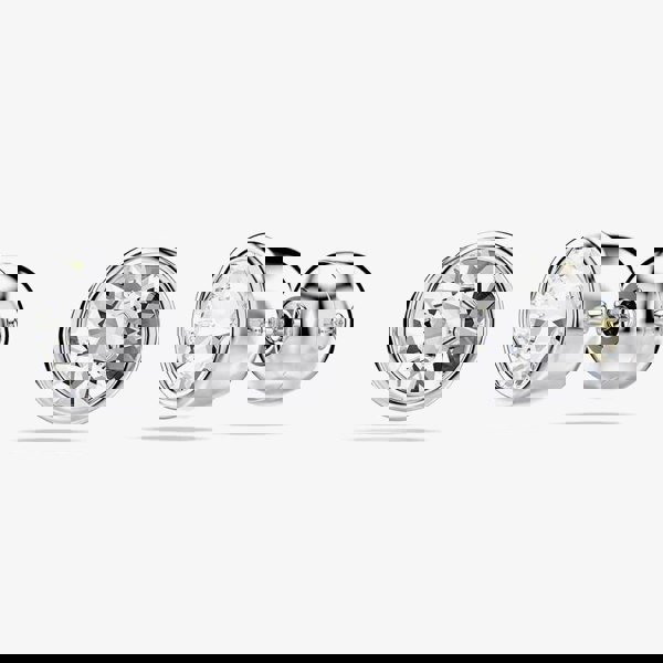 These refined pierced studs exemplify Swarovski’s expert faceting. Each rhodium-plated piece showcases a round-cut crystal in a puffy bezel setting.