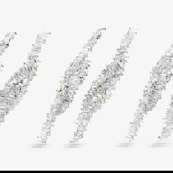 Symbolising an unbreakable bond, these Matrix earrings showcase a distinctive woven ribbon design. Crafted in rhodium plating, each twisted motif is elegantly adorned with baguette-cut Swarovski Zirconia set in prongs. Perfect for moments that demand refined sophistication.