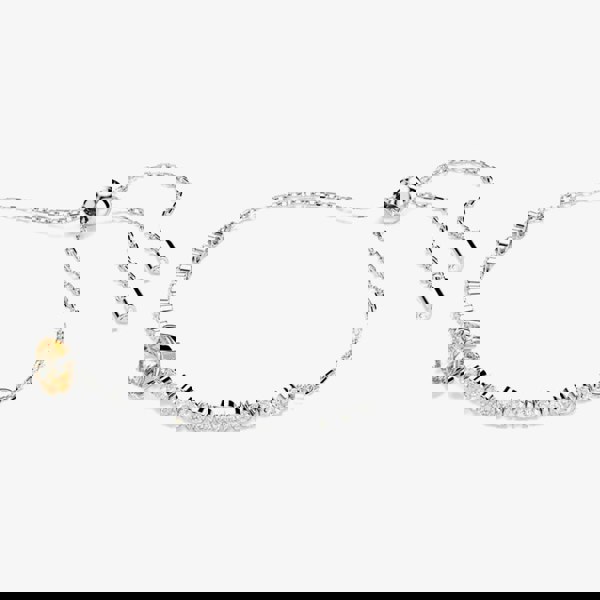A modern twist on the classic tennis bracelet, this Matrix piece blends clear Swarovski Zirconia with a radiant splash of colour. Secured with a sliding closure, the rhodium-plated jewellery showcases a uniform row of clear Swarovski Zirconia, highlighted by a round-cut champagne Swarovski Zirconia at the centre. This joyfully radiant piece will elevate any outfit.