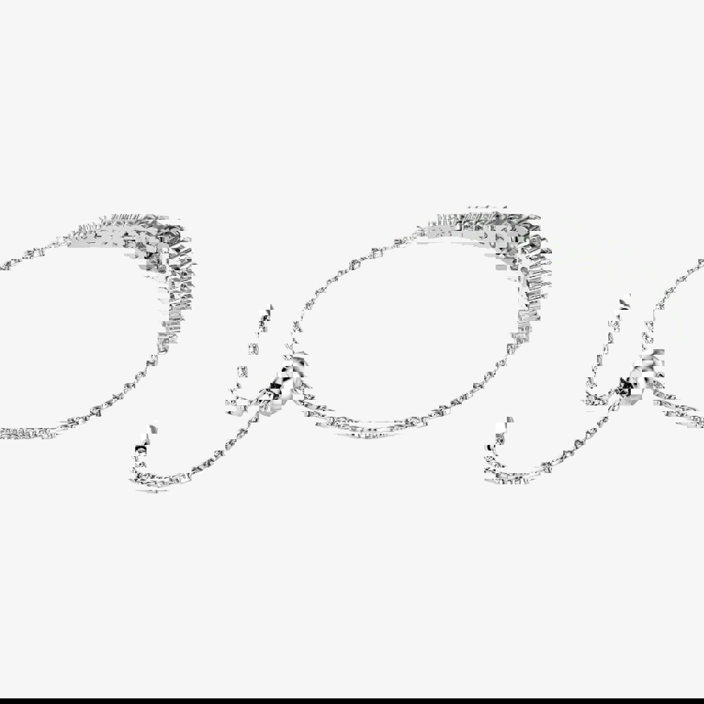 This radiant Matrix bracelet is a perfect way to let your personal style shine. Worn on a delicate chain with a sliding ball closure, the rhodium plated design is adorned in a gradient of round-cut Swarovski Zirconia, each faceted for light-reflecting wonder. Enhance the look of luxury by pairing the jewellery with a set of matching earrings or a necklace.