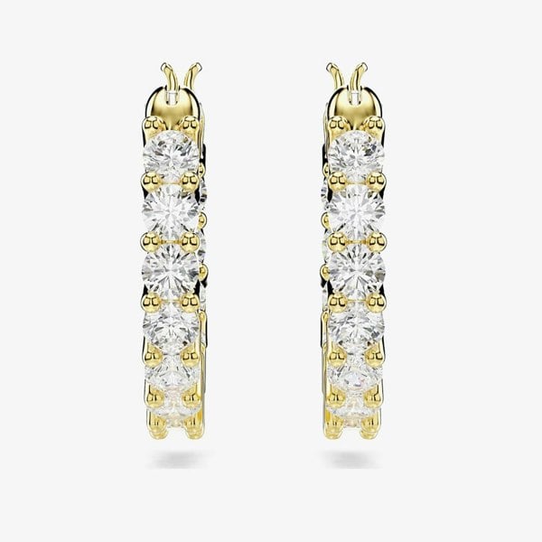 These Swarovski mini hoop earrings are a timeless addition to any jewellery collection. Crafted in gold-tone plating and adorned with multiple Swarovski Zirconia, they offer a subtle shimmer that adds elegance and radiance to any look.