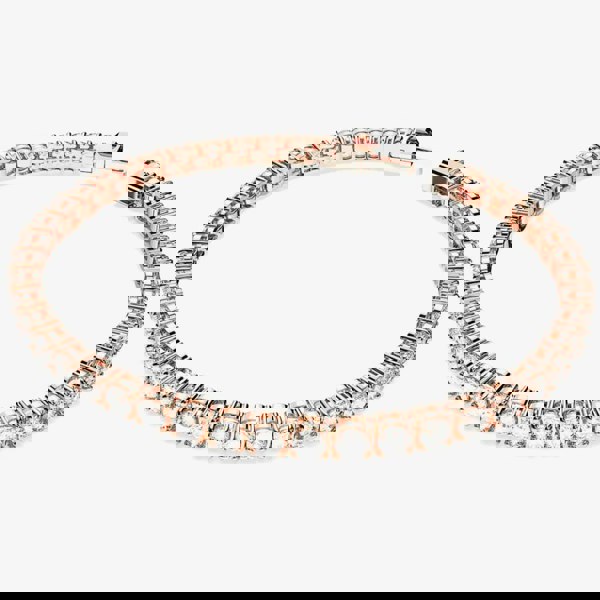 The Swarovski Matrix Rose Gold Tennis Bracelet is delicately crafted from base metal with rose gold-tone plating. This beautiful tennis bracelet is adorned with round-cut white cubic zirconia stones set in a four-claw setting and is a size medium. Width: 0. 4cm.