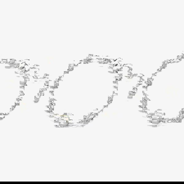 The delicate rhodium-plated chain is adorned with wondrous Swarovski Zirconia in a variety of dramatic cuts, creating a dazzling effect. An additional stone is delicately placed at the end of the hanging elongation.