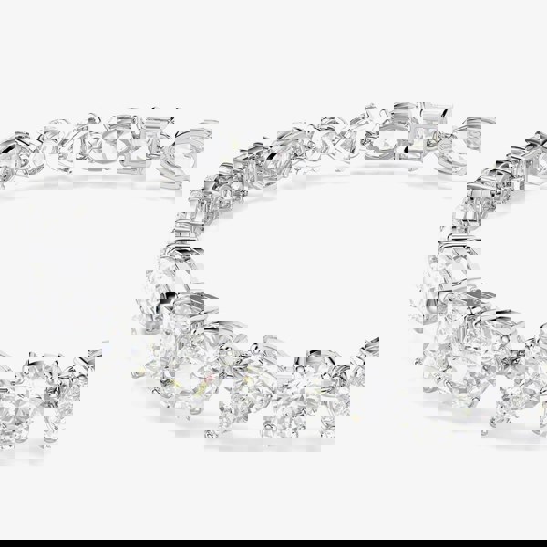 Celebrate the beauty of contrast with this Mesmera bracelet, featuring a striking mix of Swarovski Zirconia in assorted cuts and sizes. Crafted in rhodium plating, the design offers both brilliance and intrigue. A lobster clasp with three adjustable settings ensures a comfortable fit.