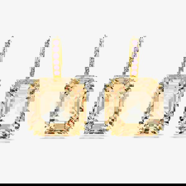 Define your style with these elegant Asscher-cut earrings in a rich, warm tone. Gold-tone plated and double prong-set with caramel-coloured crystals, each piece is accented with radiant purple pave detailing on the bail. These earrings are the perfect way to add a vibrant touch to any outfit.
