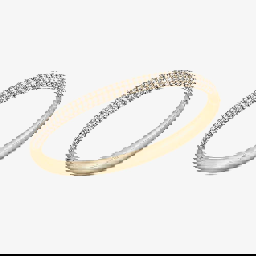 The edge of this glamorous rose gold-tone plated bangle is embellished in glittering clear crystals. Stack two, three, four or more bangles together for complete sparkle.
