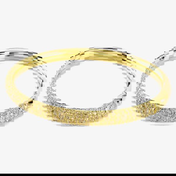 Add a touch of stardust to your style with this dazzling Sublima bangle. The gold-tone plated band curves elegantly around the wrist, accented with a pav of shimmering gold-tone crystals in varying sizes. Finished with a sleek tilt-up clasp for easy wear, it’s a refined and radiant piece perfect for elevating everyday looks.
