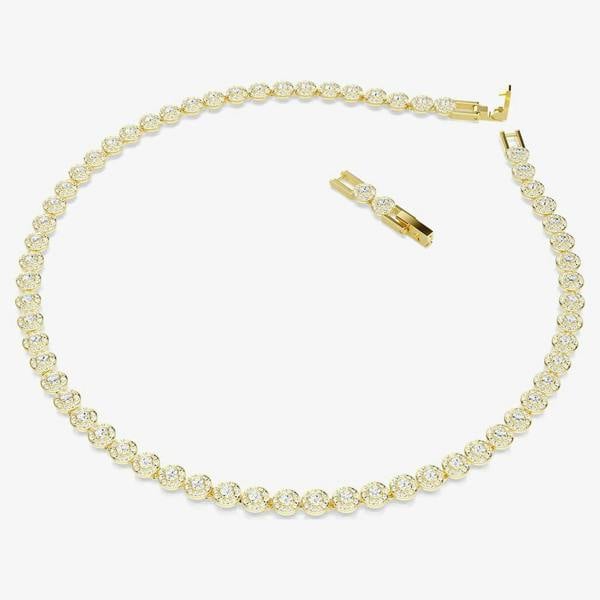 Shine with elegance with the Swarovski Una Angelic Gold Tone Plated White Crystal Necklace. This stunning statement piece features a full length of round-cut white Swarovski crystals, each framed by a halo of smaller crystals for maximum sparkle. Finished with a fold-over clasp and extender for a comfortable fit, it’s perfect as a thoughtful gift or a dazzling addition to your own jewellery collection.