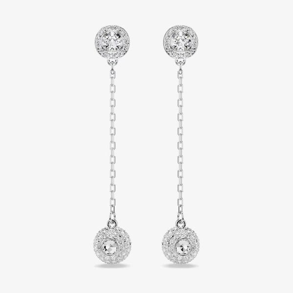 Una Rhodium Plated Round White Crystal Drop Earrings 5732273
