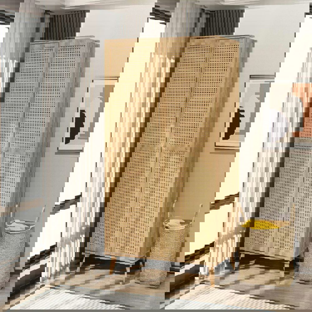 The Manila Rattan 2 Door Double Wardrobe combines natural charm with practical storage, making it a beautiful addition to any bedroom. Its PVC rattan paneled doors add a soft boho or coastal touch, while inside you’ll find a full hanging rail for clothes and a handy top shelf for bedding, boxes, or accessories keeping your space stylish and organized.