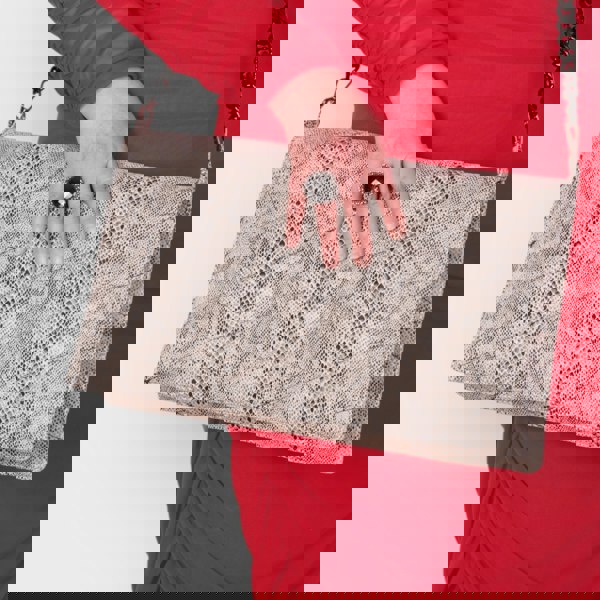 Crafted from high-quality vegan leather dead stock, the clutch showcases a striking black and white animal print snakeskin texture, enhanced by sleek quilted detailing for a luxurious, modern edge. Whether you're heading to a business meeting or dressing up for a night out, this bag offers versatile styling for all genders, with particular attention paid to plus-size fashion—proportions that flatter, scale that stands out.