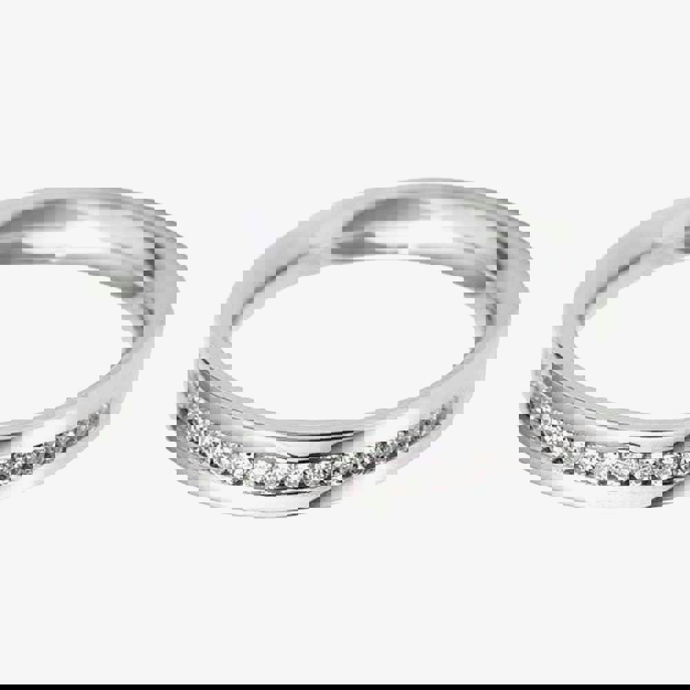 This exquisite ladies white gold wedding band is perfect for bringing an extra special sparkle to your ring finger. Crafted in luxurious 18ct white gold the band features a stylish flat court shape, hosting a channel of dazzling diamonds you will love to flaunt. The stunning stones are brilliant cut with colour H and clarity SI for a radiant sparkle.