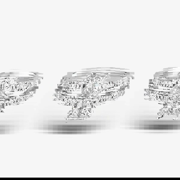 This shoulder set cluster ring is crafted from 18ct white gold and set withprincess cut white diamonds. This ring is a perfect stand-alone piece or ideal for layering & combining with other rings to create your own unique look.