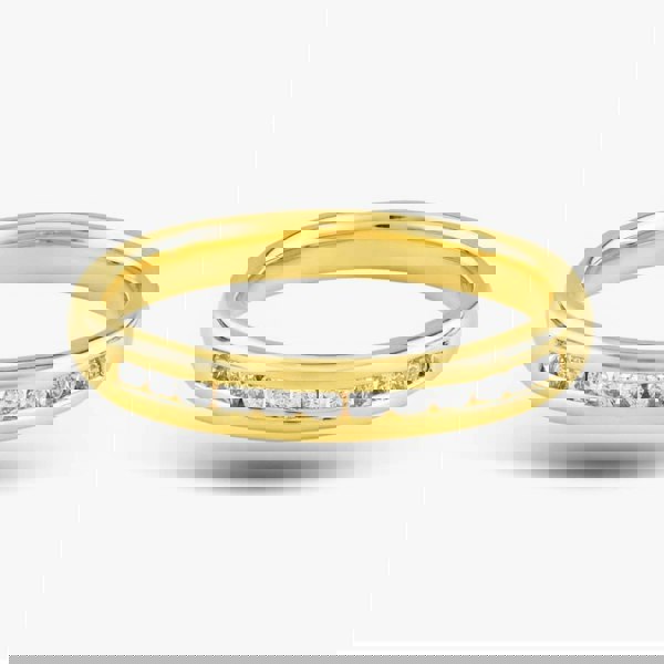 Crafted with meticulous attention to detail, this ring features a row of twelve dazzling diamonds totalling 0. 17ct, set in a classic half eternity style. Each brilliant-cut diamond sparkles with captivating brilliance, adorning the finger with a touch of glamour and elegance. The warm glow of the yellow gold complements the shimmering diamonds, creating a harmonious and luxurious aesthetic.