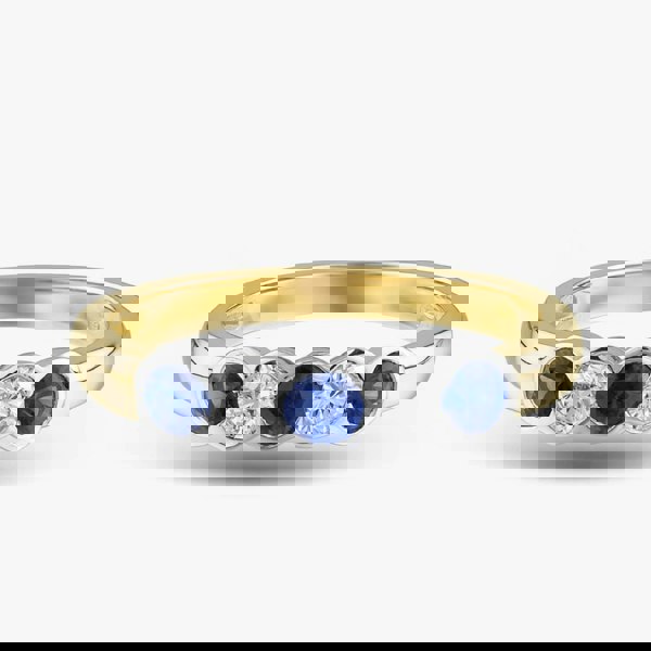 Crafted with a touch of simplicity, this 2. 2mm five-stone ring exudes timeless elegance. Delicate 18ct yellow gold embraces 0. 40ct brilliant-cut sapphires and 0. 20ct white diamonds in an alternating pattern, nestled securely in a rubover setting. The perfect accompaniment for any special occasion, this ring promises to leave a lasting impression.