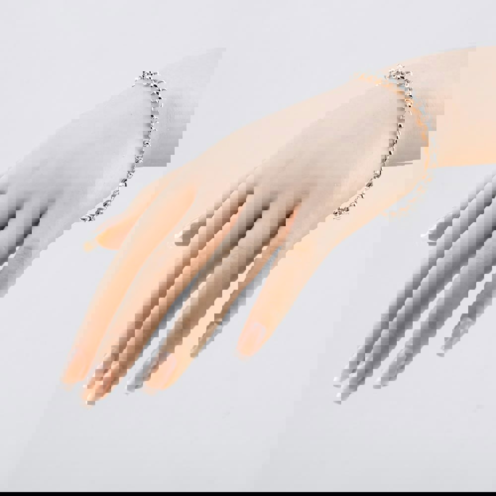 This chain-style bracelet measures 18cm, offering a considered fit that sits comfortably at the wrist. A versatile choice for day-to-evening dressing, it brings subtle lustre to both casual and smarter looks.