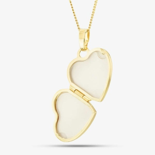 This stunning locket is a modern take on a classic. The heart shaped diamond is crafted in 9ct yellow gold and is set with a single diamond. A delicate diamond cut curb chain is supplied with the locket for the perfect keepsake gift.