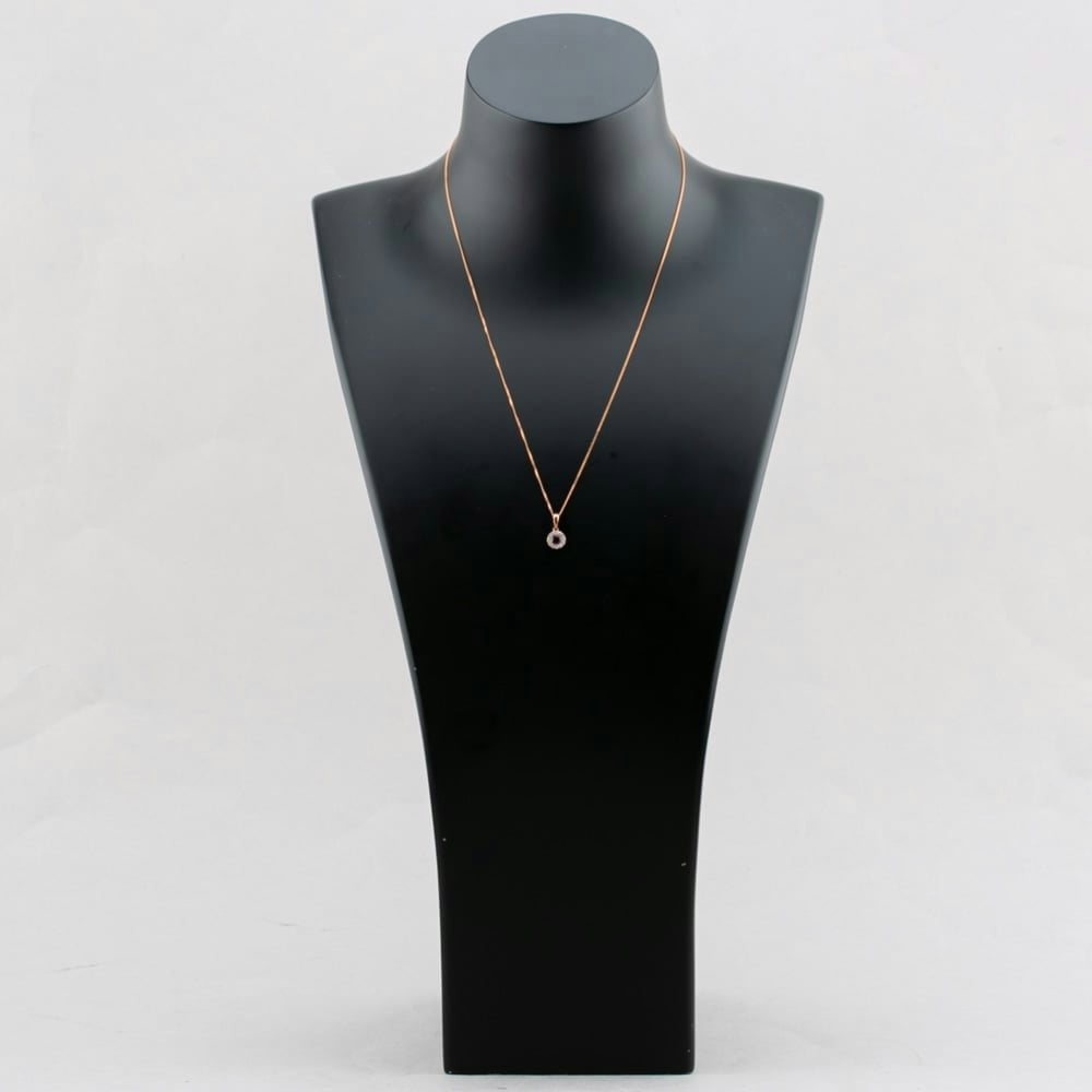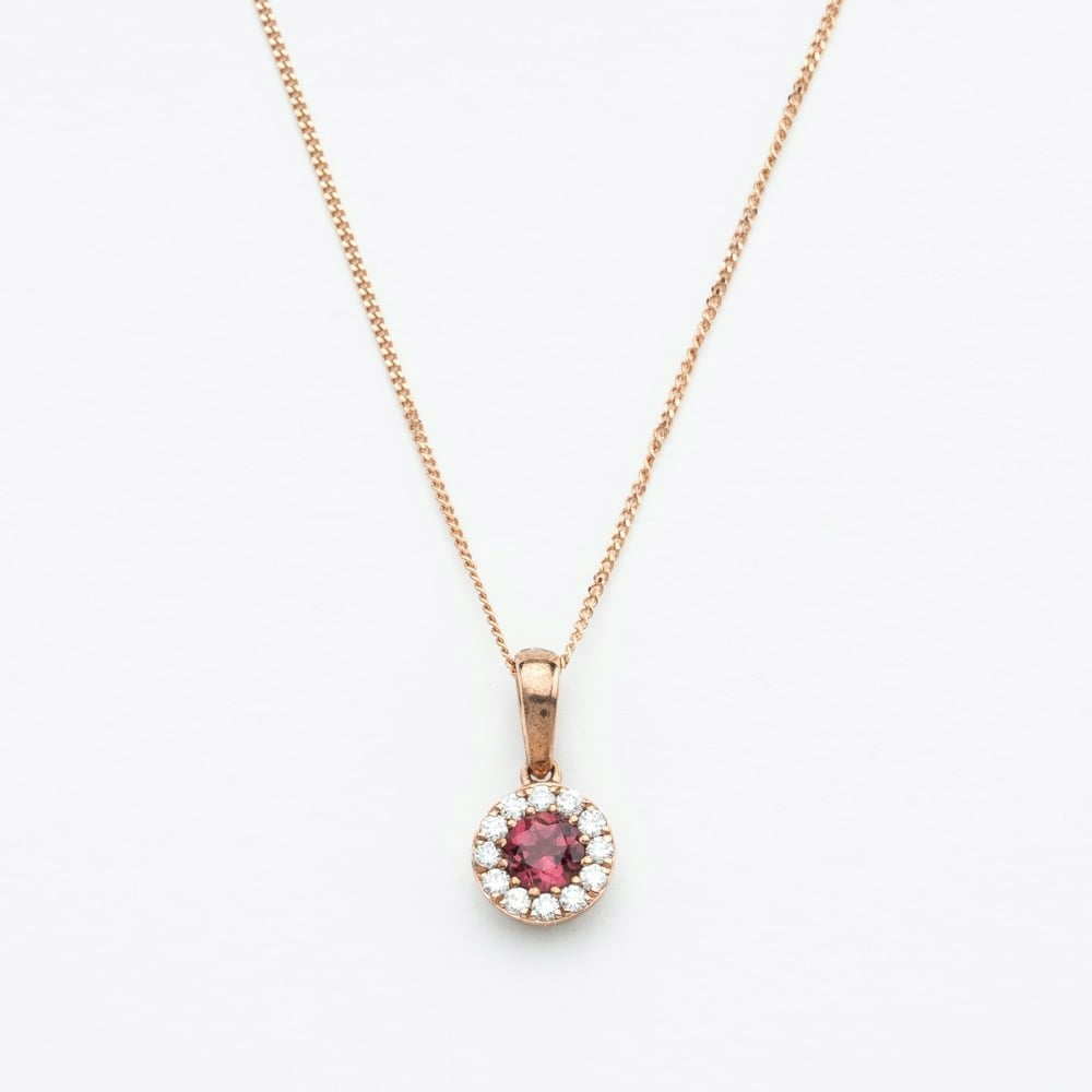 This elegant 9ct rose gold pendant necklace showcases a 0. 39ct tourmaline, surrounded by a halo of 0. 14ct sparkling diamonds. The soft pink tones of the tourmaline complement the warm rose gold and dazzling diamonds, creating a timeless and sophisticated piece full of charm and elegance.