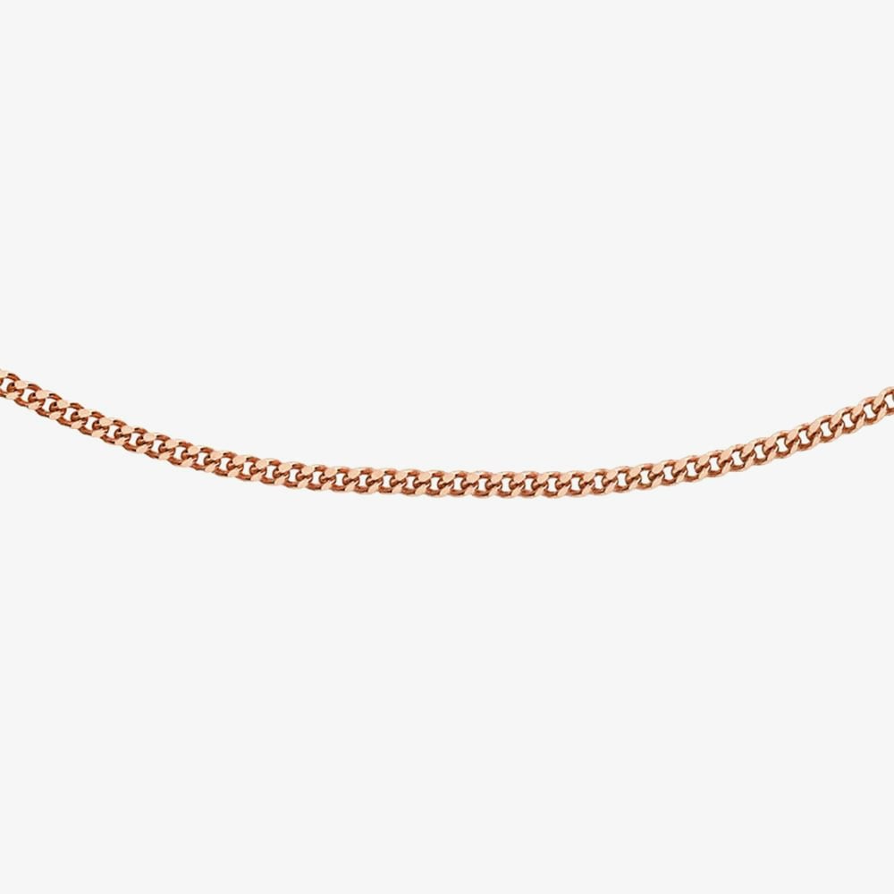 A stunning addition to any look, the 9ct Rose Gold 46cm Diamond-Cut Curb Chain offers simply beautiful style to anyone who wears it. Made from 9ct rose gold and measuring 46cm long and 0. 8mm wide, this fine-look chain features a diamond-cut curb chain and fastens with a round trigger clasp.