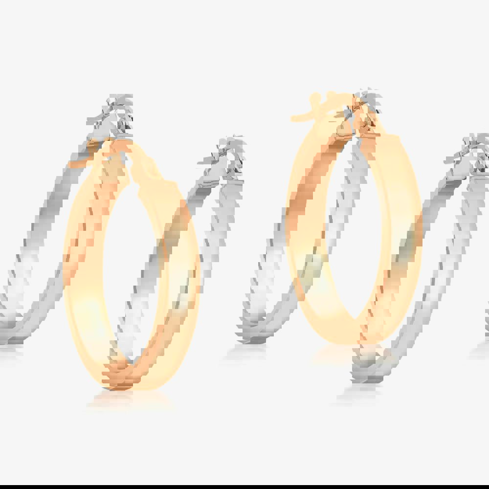 Crafted from 9ct rose gold these stunning earrings from the T H Baker Collection boast an attractive plain flat design. A minimalistic pair of hoops that are sure to compliment any outfit.