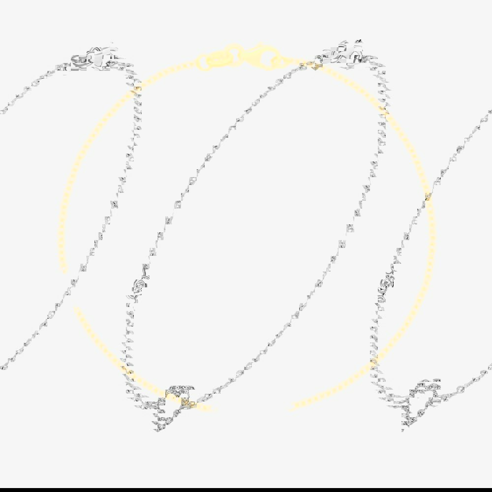 Bring a refined, romantic accent to everyday styling with the T.H.Baker Open Heart Bracelet, a ladies’ chain bracelet crafted in 9ct two colour gold. An elegant open heart charm sits at the centre, set with white cubic zirconia for a clean, light-catching finish that pairs easily with both warm and cool-toned jewellery.