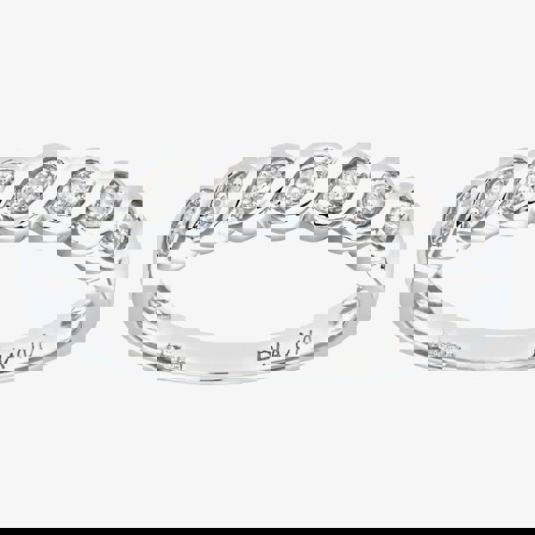 This beautiful swirl half-eternity ring is delicately crafted in 9ct white gold and is adorned with white diamonds with a total carat weight of 0. 10ct. This ring is a perfect stand-alone piece or ideal for layering and combining with other rings to create your unique look.